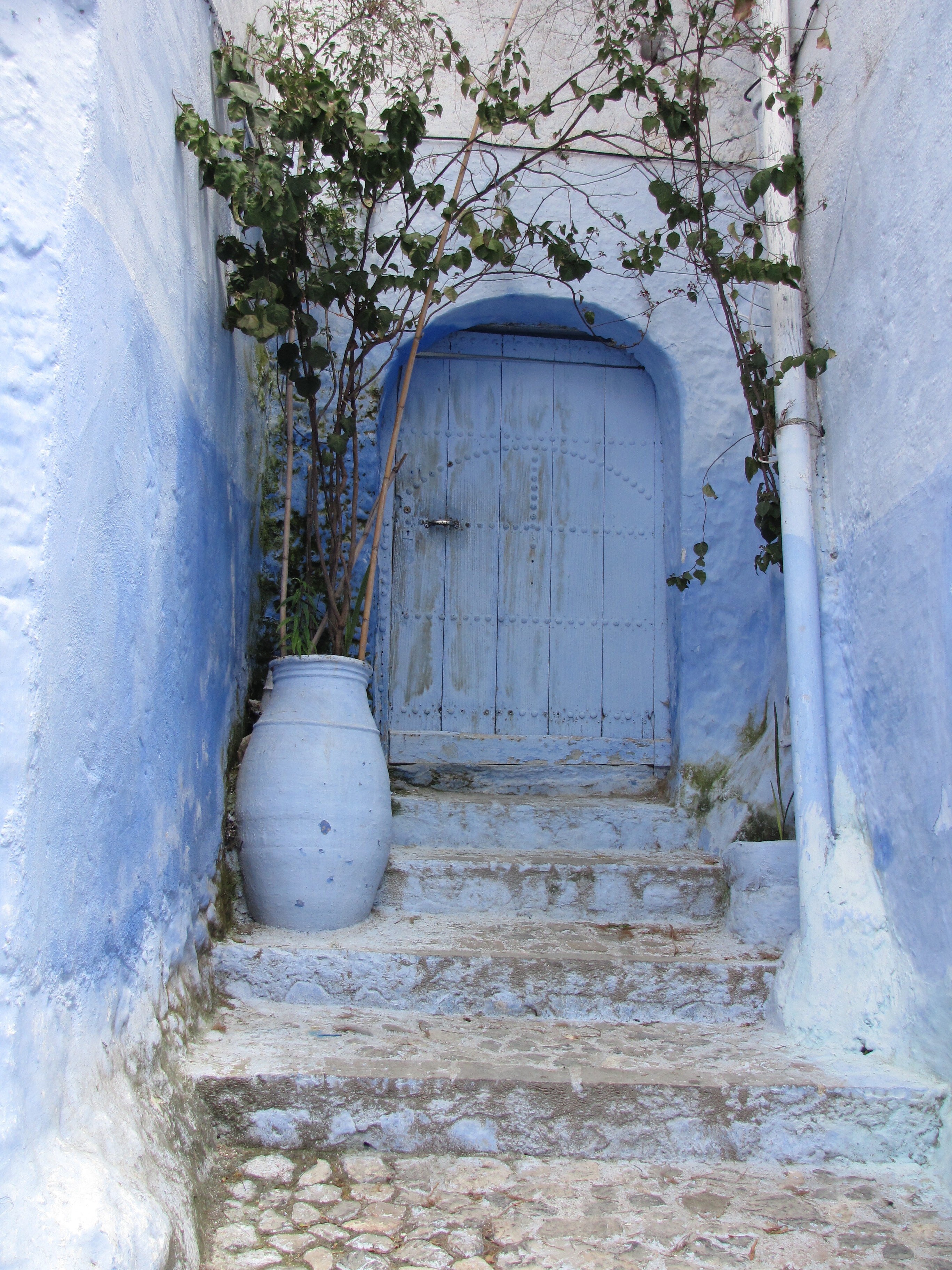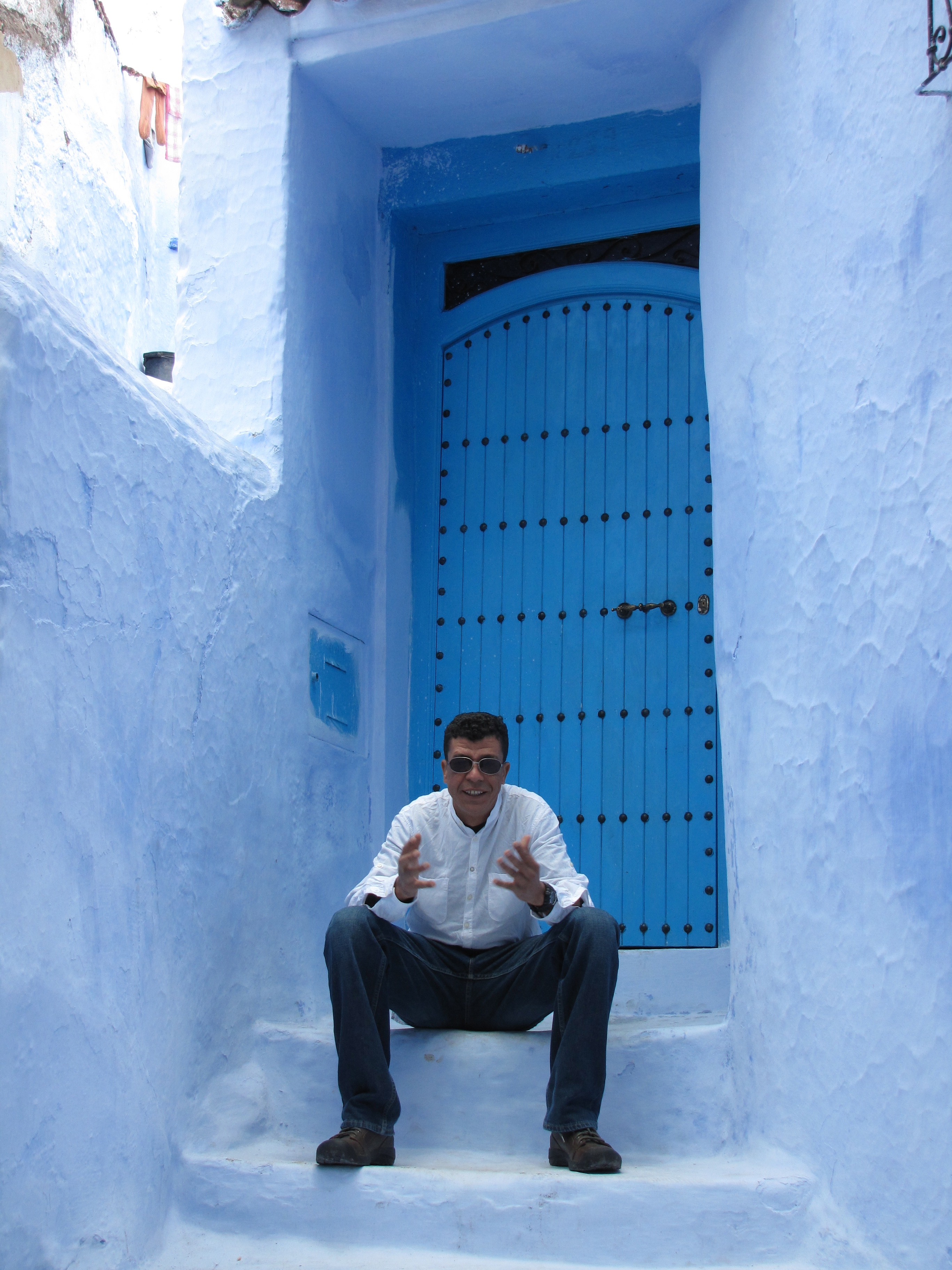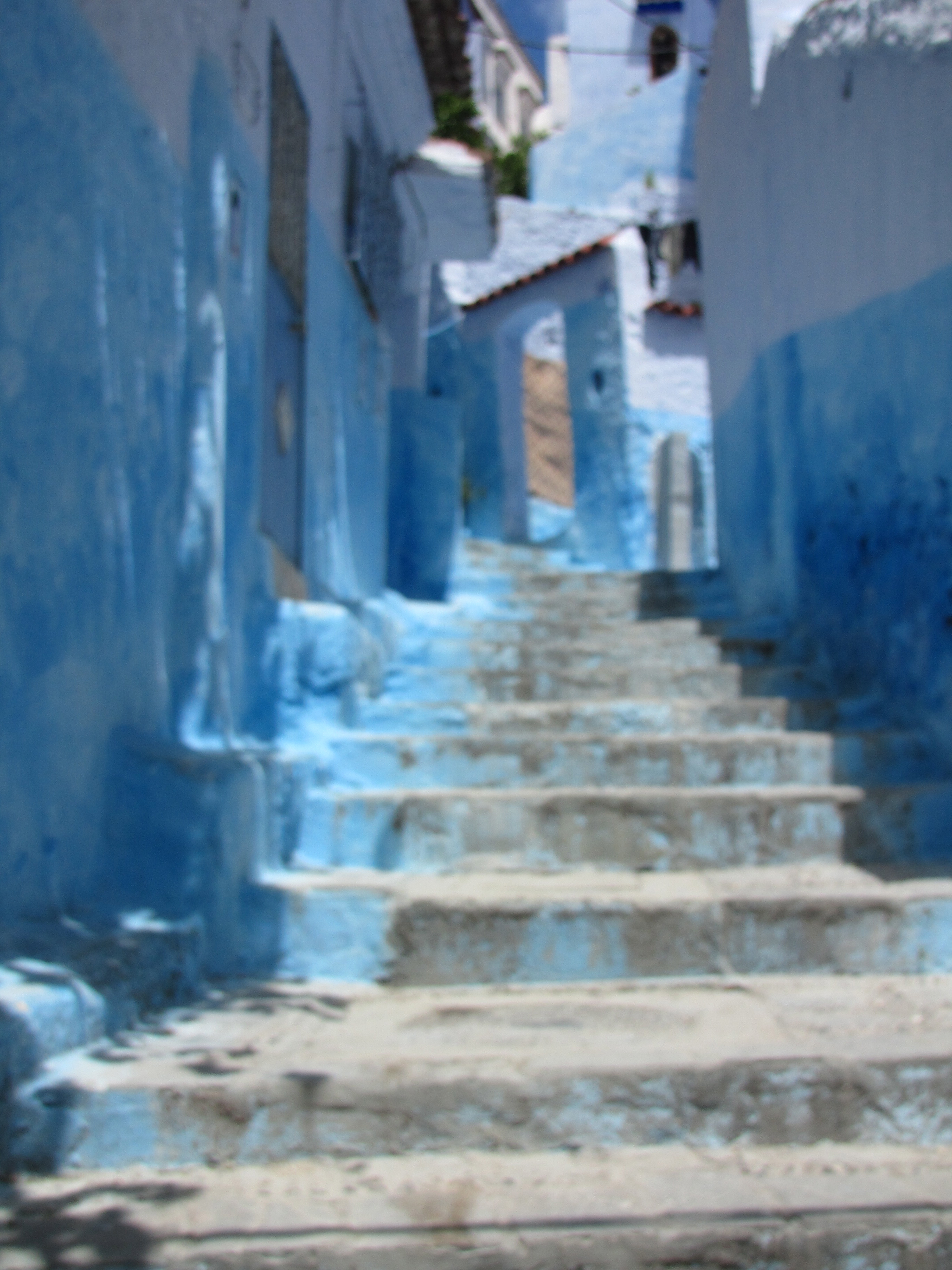When in Chefchaouen, Morocco a few days ago, I became confused on the blue streets and alleyways; all of them looked alike! I have an excellent sense of direction but with all these blue doors and streets, it’s no wonder I couldn’t find the Hotel Parador. Or at least that’s what I thought the name of the hotel was where I was to meet Mokhtar after 2 hours of taking pictures. So after walking for what I knew was too long, I stopped and asked someone. He didn’t know English so I tried some French. It worked. He knew where I was to go. So off I went, following him past all the men waiting to get in to Mosque. He explained to each one he was taking me somewhere to show me my way, as if he needed to explain to these traditional men why he was walking with a woman, even though I tried to maintain a 3-step distance behind him.